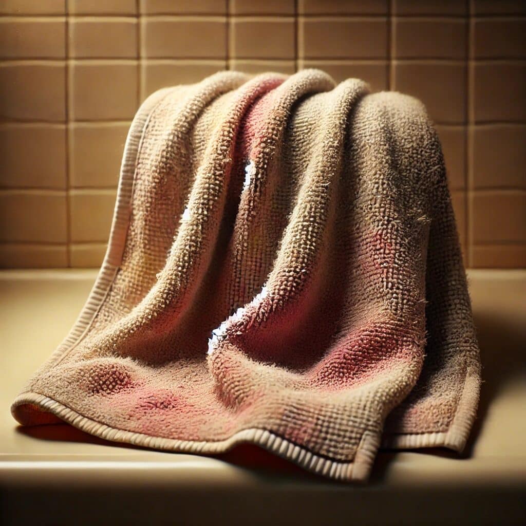 したがって、「いつも使っているタオルが少しピンクがかってきた」という程度なら早めの対処を心がければOKです。しかし、完全に茶色や赤色に近い汚れが広範囲にわたって付着している場合は、衛生面が心配ですので、交換するかプロのクリーニングに相談したほうがよいでしょう。
