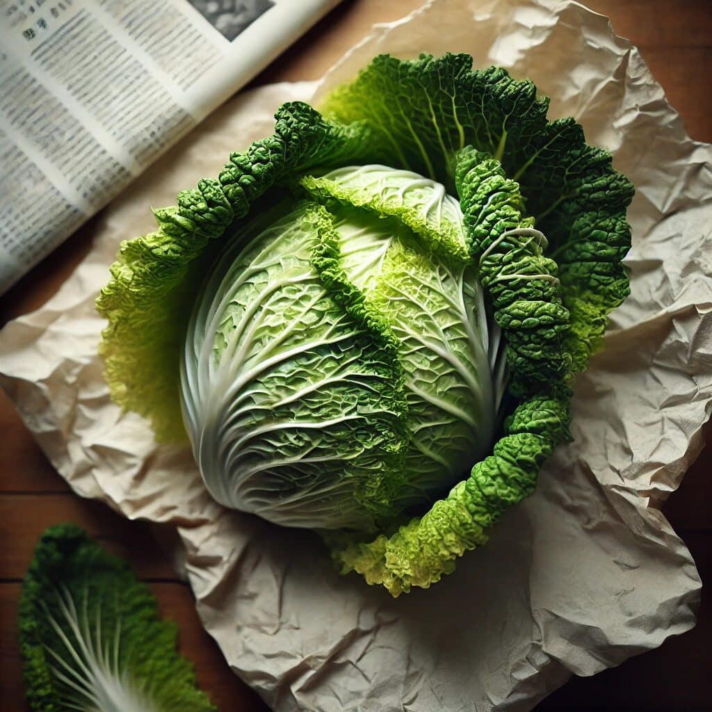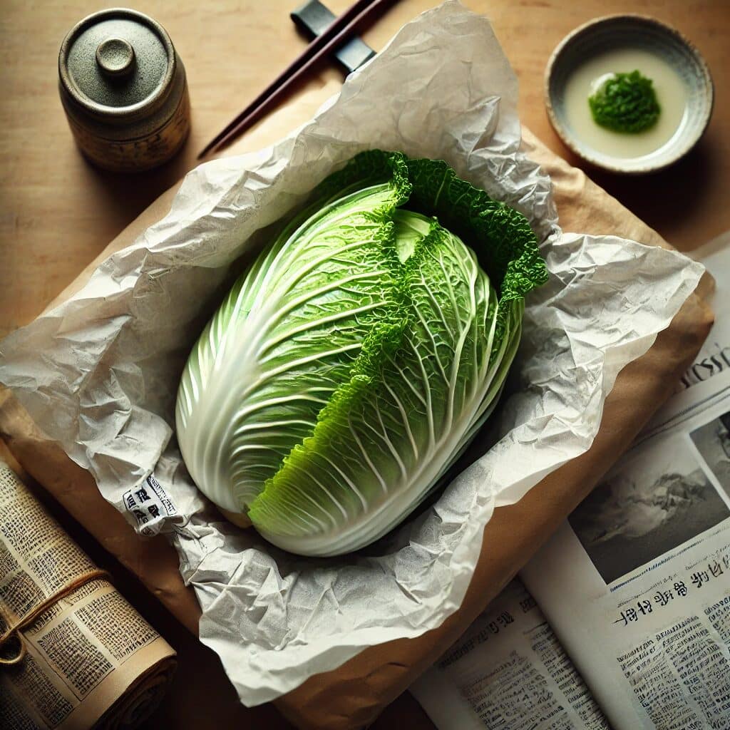 白菜をまるごと新聞紙で包み、立てて冷暗所に保管するのがおすすめです。冷蔵庫に入れる場合は、新聞紙をさらにビニール袋で覆い、口を軽く閉じて野菜室へ。こうすることで乾燥を防ぎ、外側の葉もしおれにくくなります。