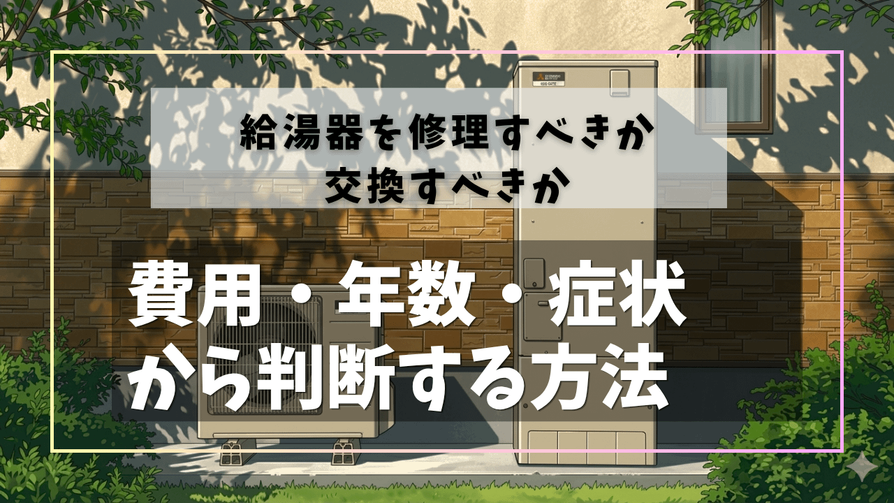 修理費が交換費の50%超なら交換が合理的。「修理後の残余寿命」を業者に確認し、トータルコストで判断してください。